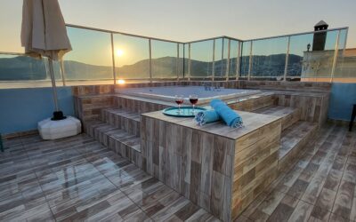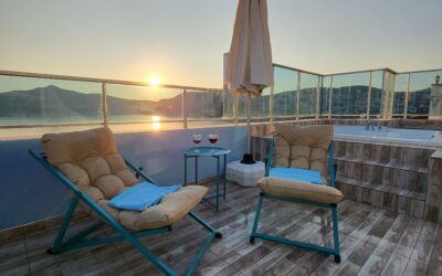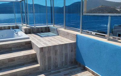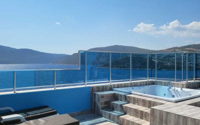 A large sliding door opens to the Balcony with a sunbed area and a Jacuzzi to enjoy the uninterrupted sea view.