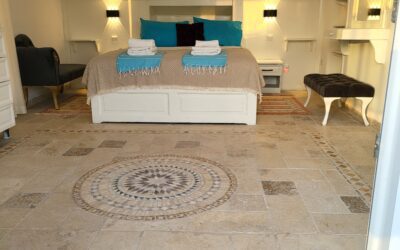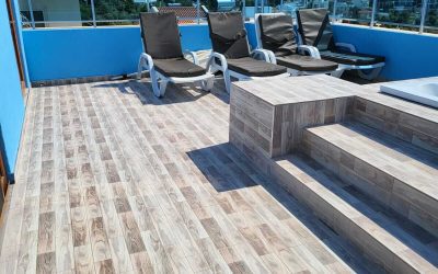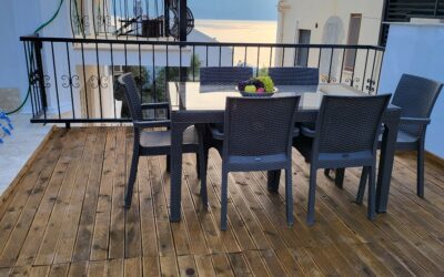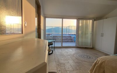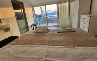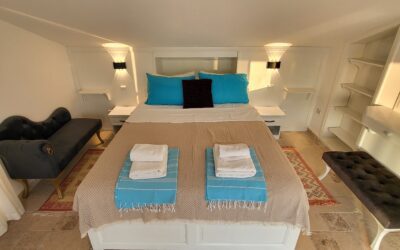 The stairs take you up to the roof terrace Penthouse, which has a European King Size 200cm X 160cm bed with its own ensuite.
